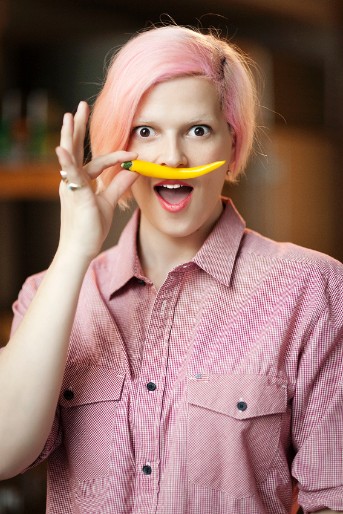 Llegar a casa de Bimba es como tomarte un tiempo de retiro espiritual. Tiene una casa que es como un búnker, estás allí y te encuentras aislada del mundo. De estilo industrial, la casa y la cocina parecen una extensión de su personalidad. La cocina es amplia y tiene una gran mesa para comidas en familia, un carrito de bebé, pinturas de su hija a rotulador y en tiza, un columpio en medio del salón, el espacio podría ser frío pero por obra y gracia de la familia que lo habita es un rincón muy acogedor. Bimba tiene una imagen arrolladora y hace un montón de cosas, pero se nota que es una persona muy familiar, muy apegada a los suyos